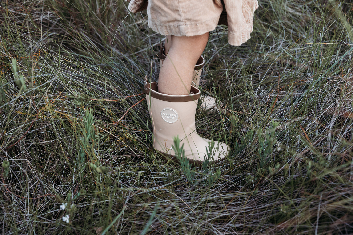 Thank you for being eco-conscious and choosing a pair of gumboots made from natural materials for your little explorer. To get the longest and most enjoyable adventures out of your boots, please: